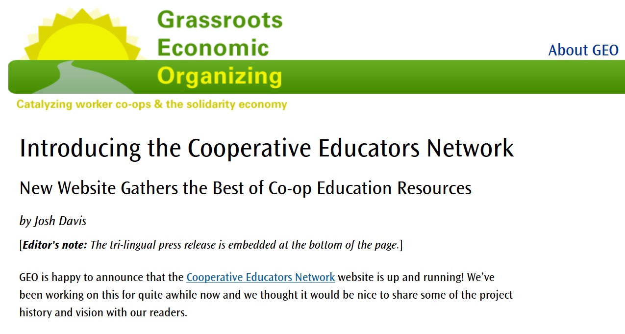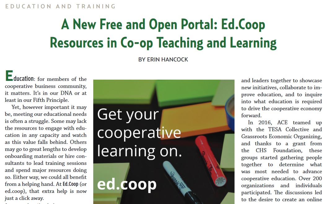 REPRINT Josh Davis (2018). Introducing the Cooperative Educators Network: New Website Gathers the Best of Co-op Education Resources. Grassroots Economic …