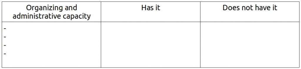 Since we are thinking about creating a solidarity enterprise, it is decisive that the group make an effort to create and develop to the maximum its own collective resources and capacities, before recurring to external sources. This is as important as the personal contributions made by each member, or more so, since it favors the integration of the group, reducing costs and deepening the commitment each and all make to the common work.